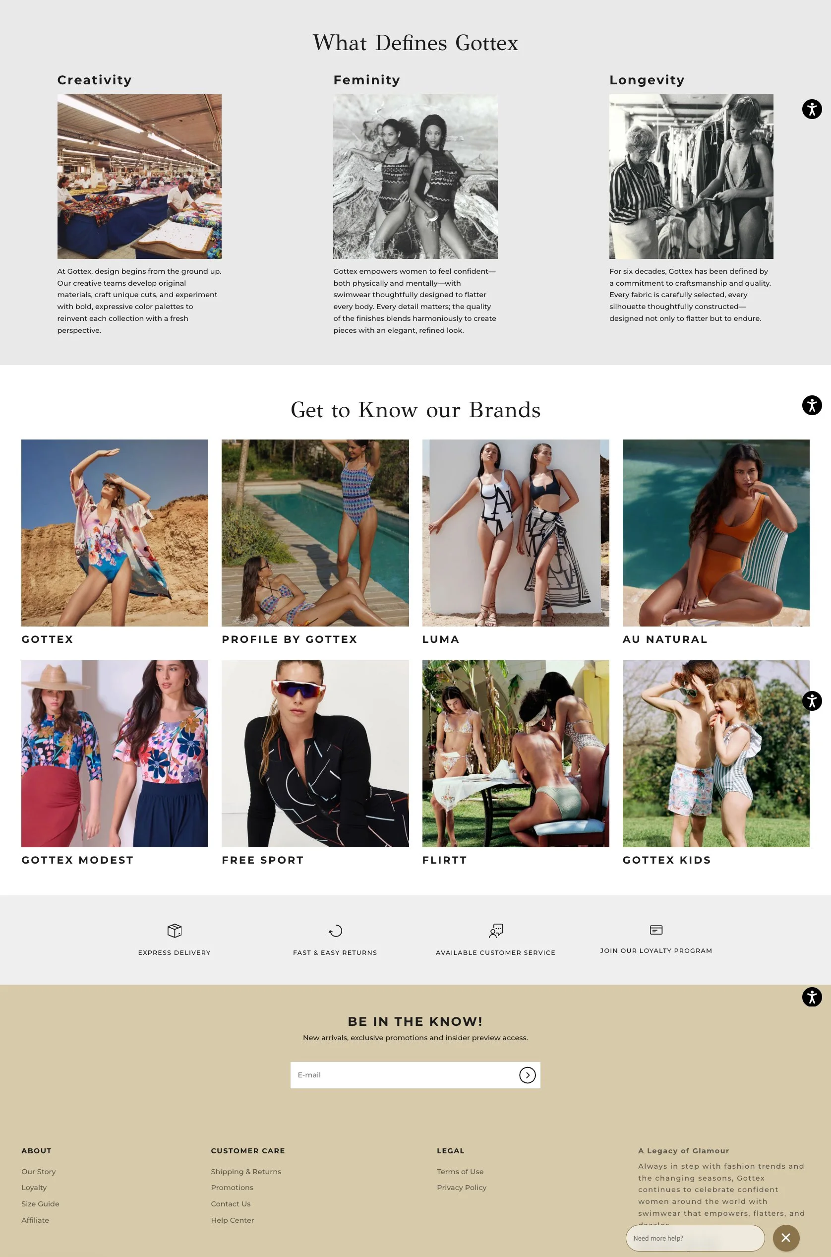 Gottex, an iconic name in upscale swimwear and leisurewear, caters to a sophisticated audience of women 40 and up with a rich portfolio of products and sub-brands. Our challenge was to honor that legacy while modernizing the brand's digital presence, creating a fashion-forward,