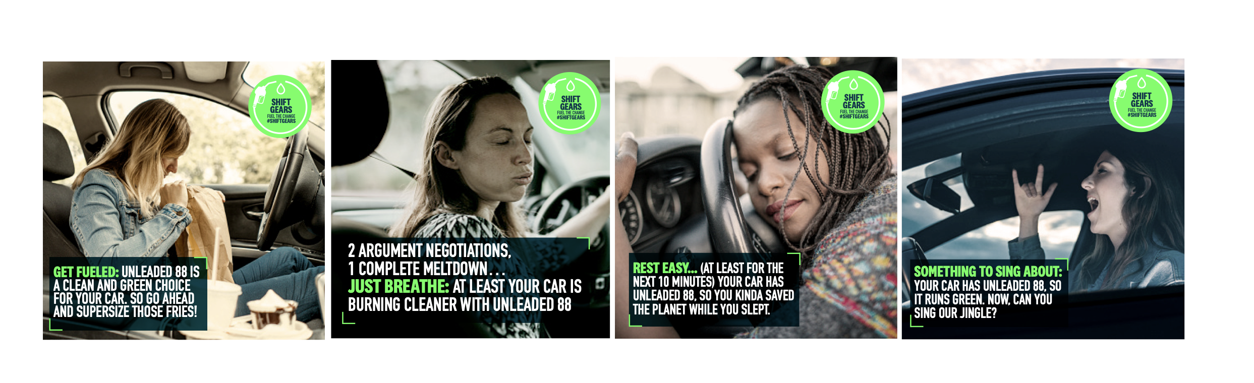 Our ad campaigns were focused around raising awareness of UNL88/E15, using relatable humor that spoke directly to the everyday experiences of busy women. One campaign specifically highlighted motherhood and the role of being the family chauffeur, connecting the brand to real-life routines.